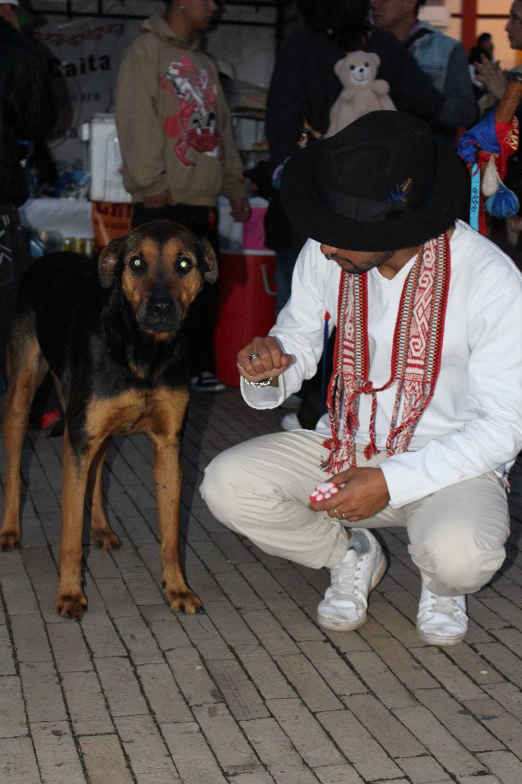 Un integrante del Cabildo aparece junto a uno de los animales que habitan en el territorio. La escena muestra el vínculo de cuidado y respeto entre las personas y los seres que comparten el espacio comunitario.